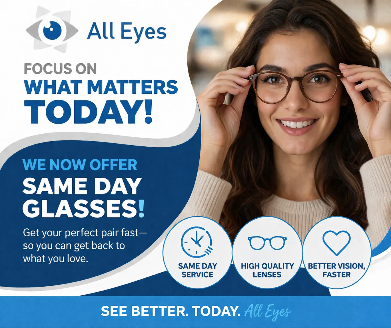 Our staff and doctors here at All Eyes Optometry are dedicated to providing the most comprehensive eyecare with the latest technology available. Our goal is to ensure you have a great experience every time you’re here!